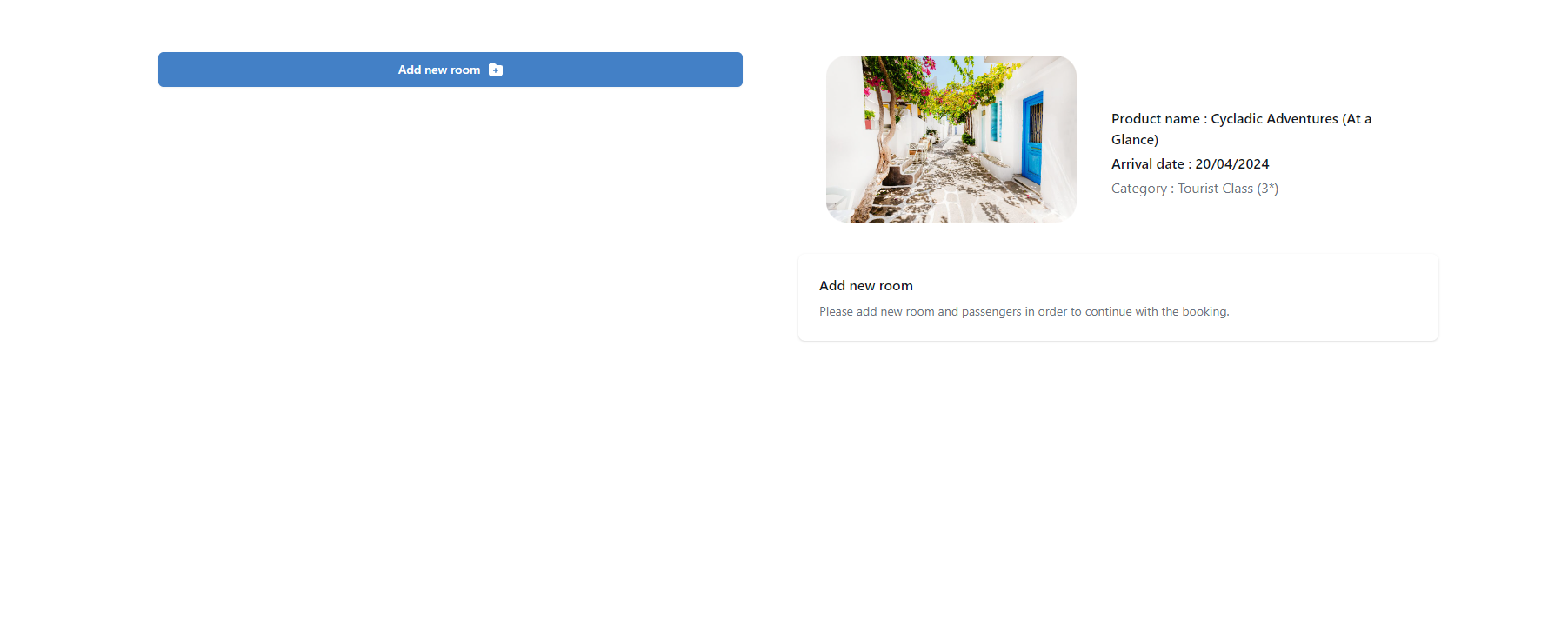 After moving forward and pressing the 'Buy Product' button, you will be redirectred to a new page in order to enter your clients' details based on room capacity (Single , Double, Triple) and any important notes (e.g., customer requires wheelchair).